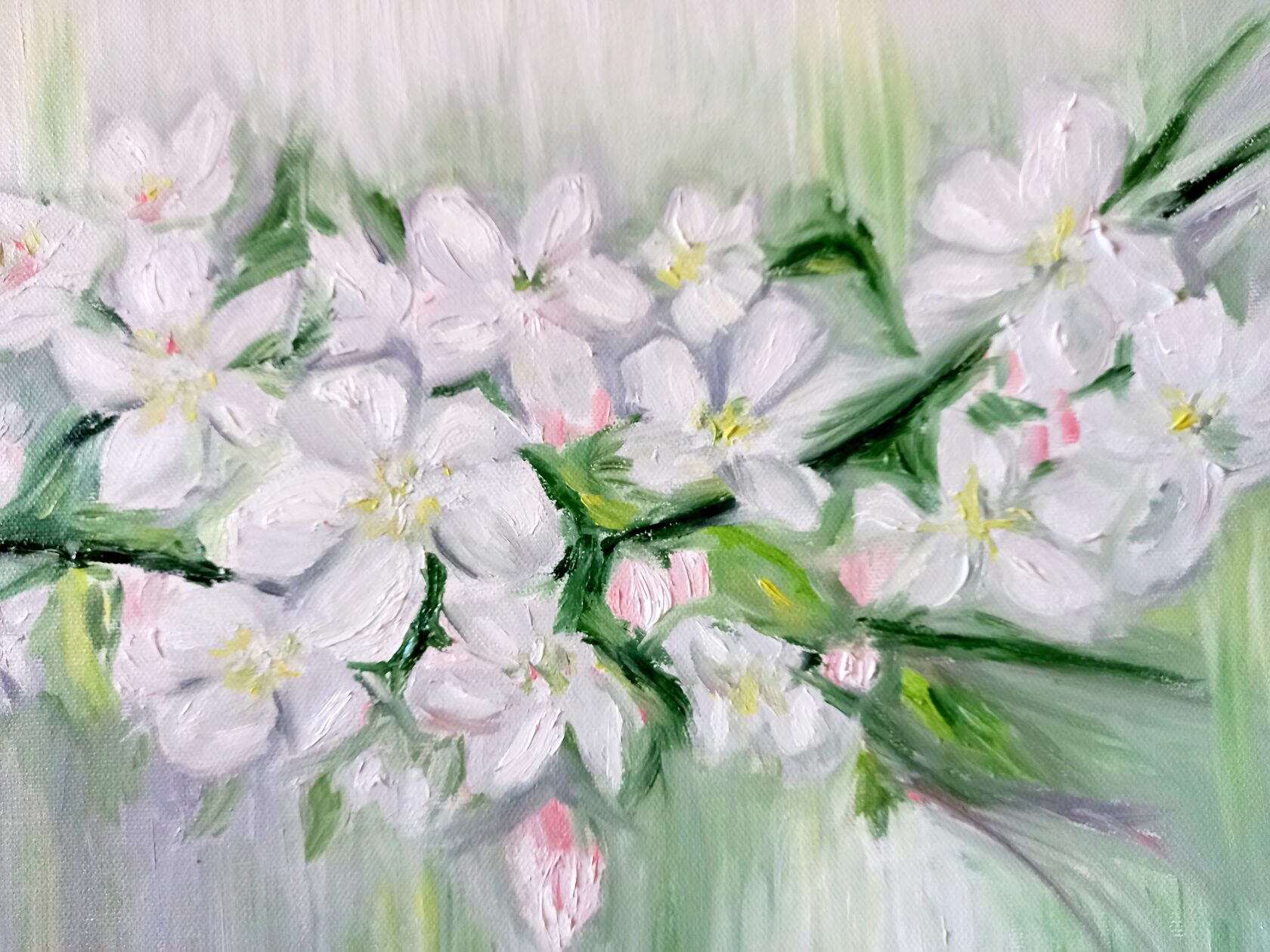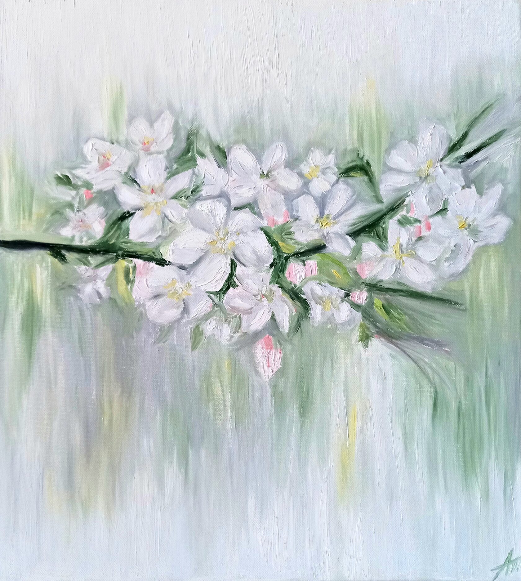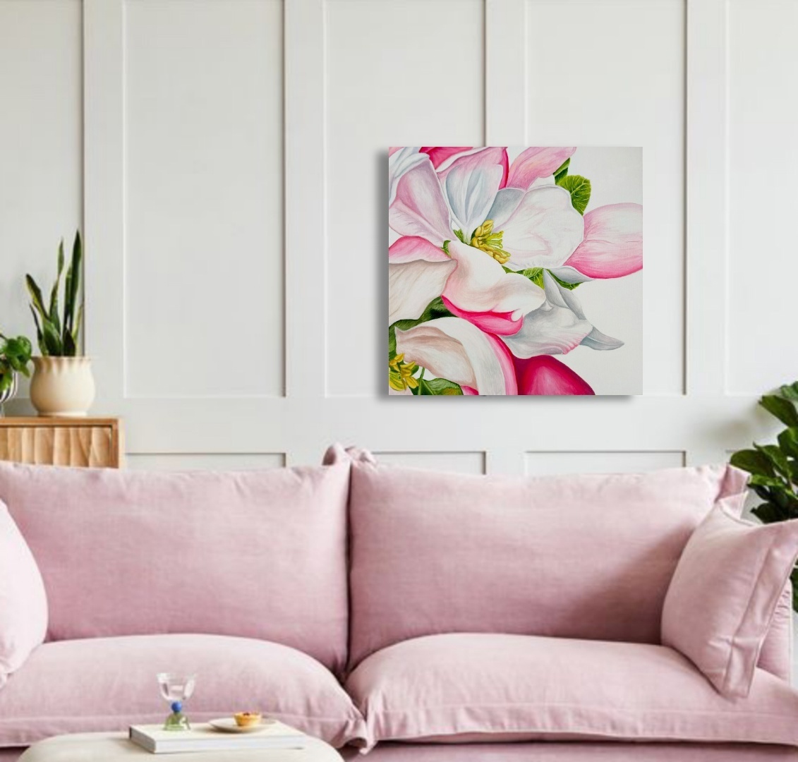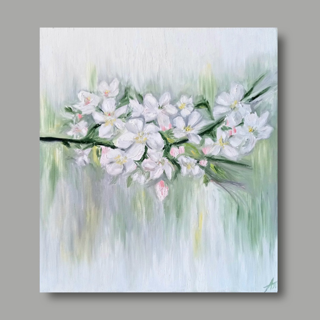 В картине «Благоговение» Александра выбрала нежные цветы яблони, выполненные в нежных тонах, чтобы символизировать трепет, одну из величайших эмоций души, которая отражает высокую культуру и любовь к самому прекрасному в жизни. Это художественное произведение предлагает нам задуматься о тонкости такого прекрасного чувства, как благоговение перед красотой, которая вокруг нас.