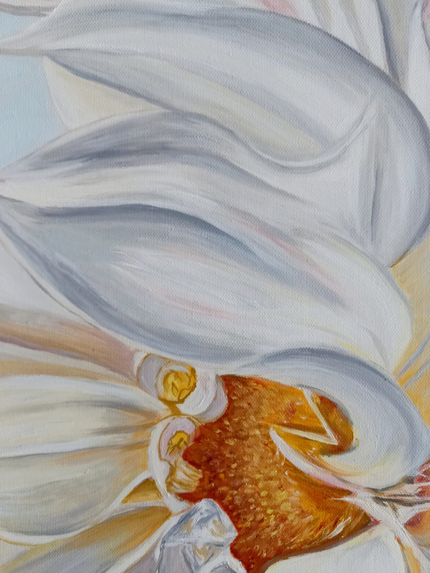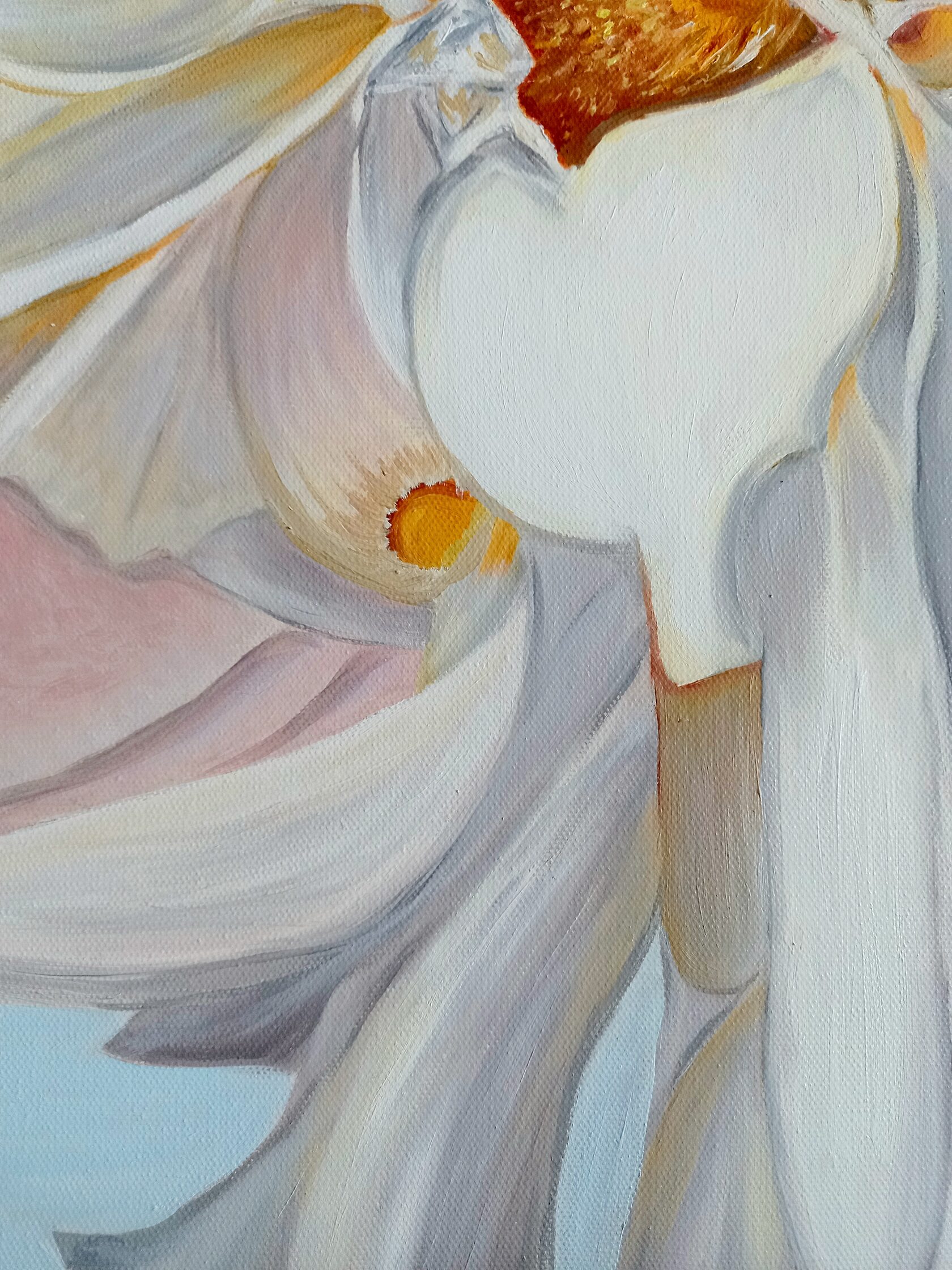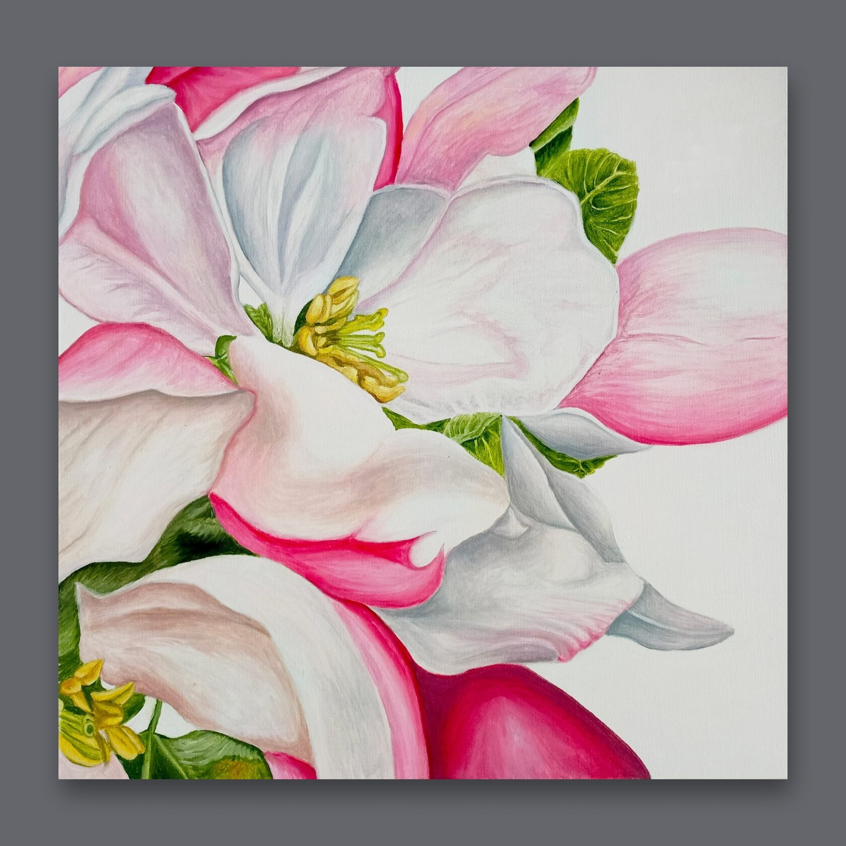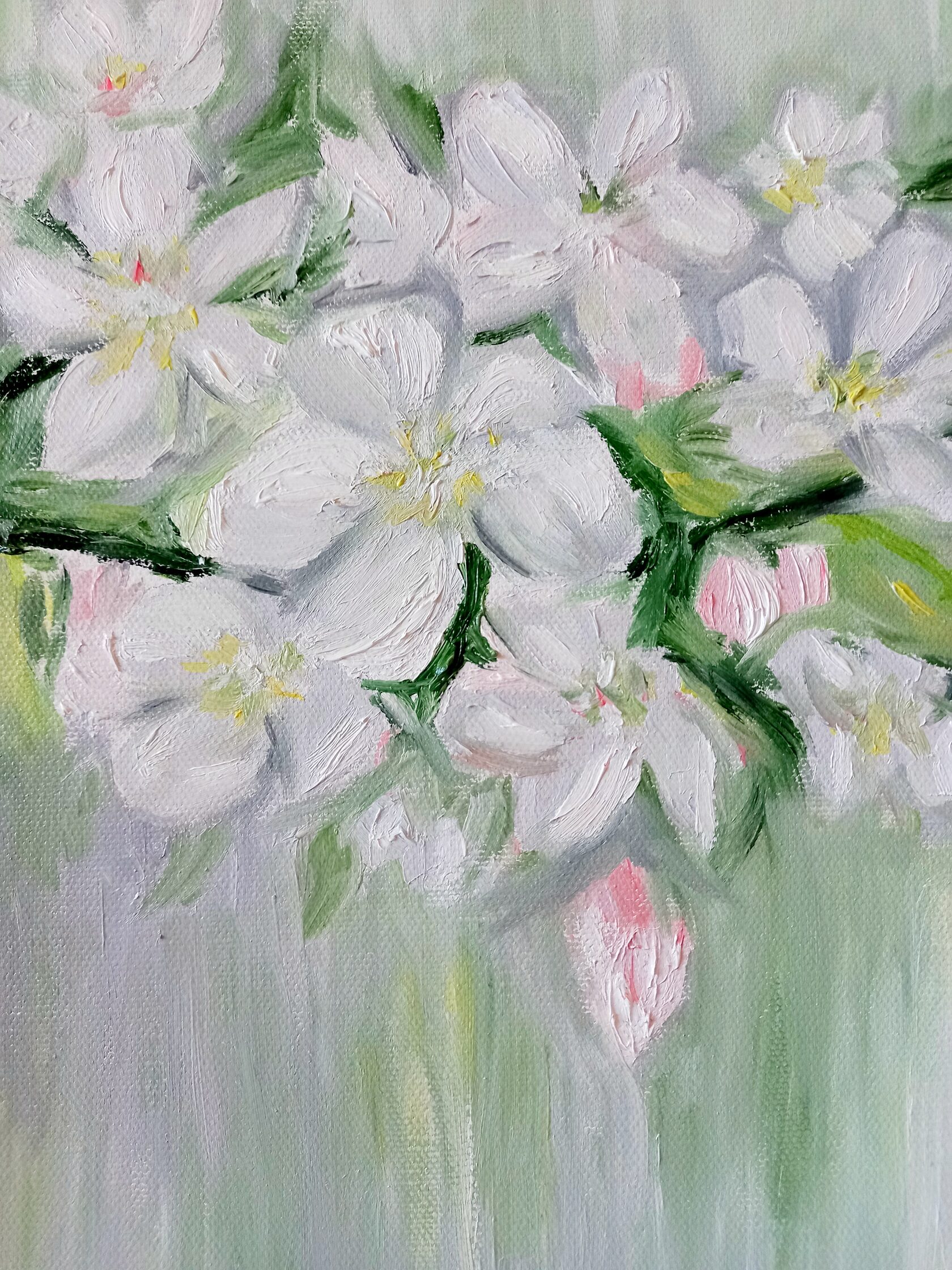 В картине «Благоговение» Александра выбрала нежные цветы яблони, выполненные в нежных тонах, чтобы символизировать трепет, одну из величайших эмоций души, которая отражает высокую культуру и любовь к самому прекрасному в жизни. Это художественное произведение предлагает нам задуматься о тонкости такого прекрасного чувства, как благоговение перед красотой, которая вокруг нас.
